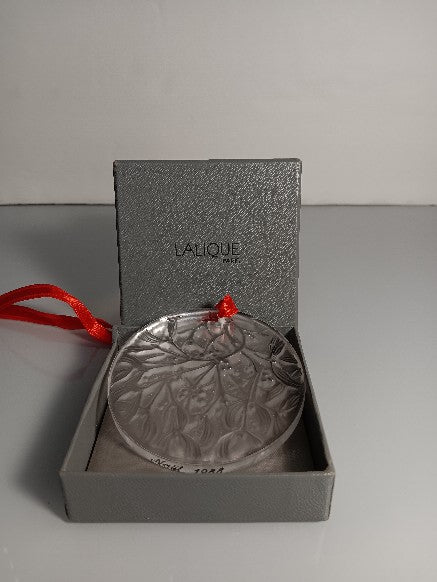 Vintage 1988 Lalique Clear Crystal Mistletoe Ornament 1988